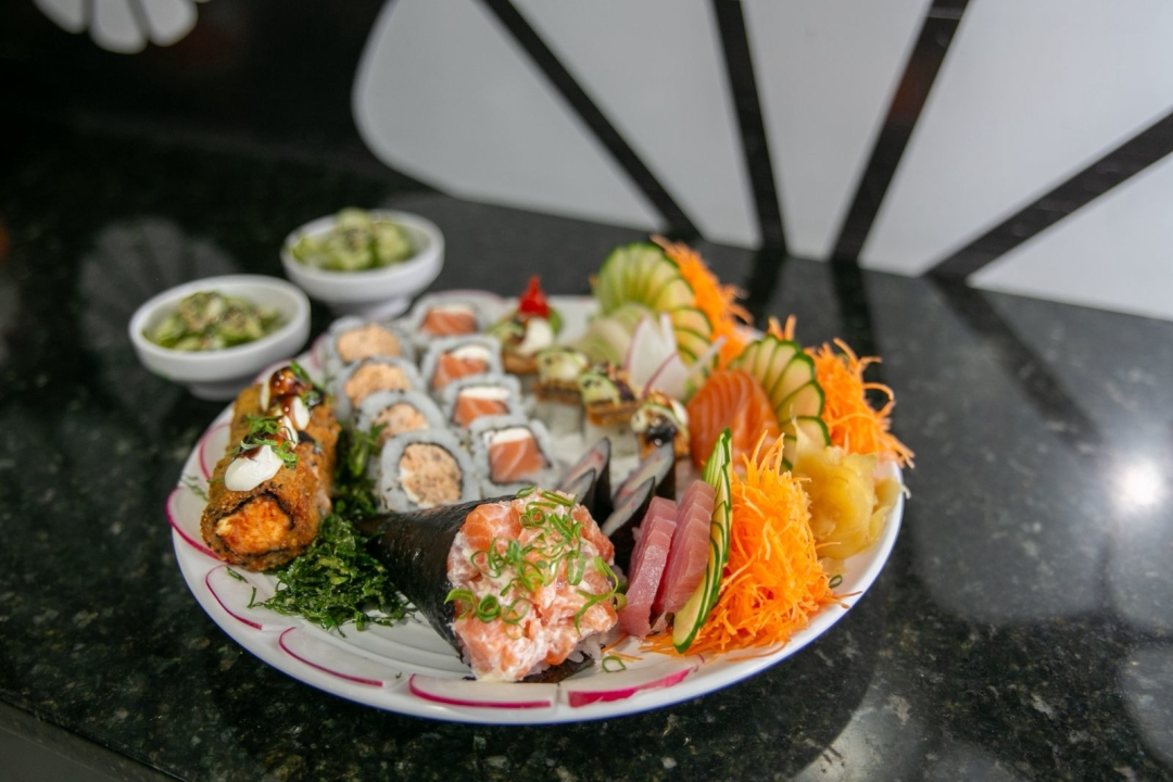 02 Sunomonos, 01 Temaki Simples, 06 Sashimis Variados, 04 Niguiris Skin, 04 Uramakis de Salmão com cream cheese, 04 Uramakis de salmão grelhado, 04 Hossomakis de Kani e 05 Hot Rolls de Salmão.